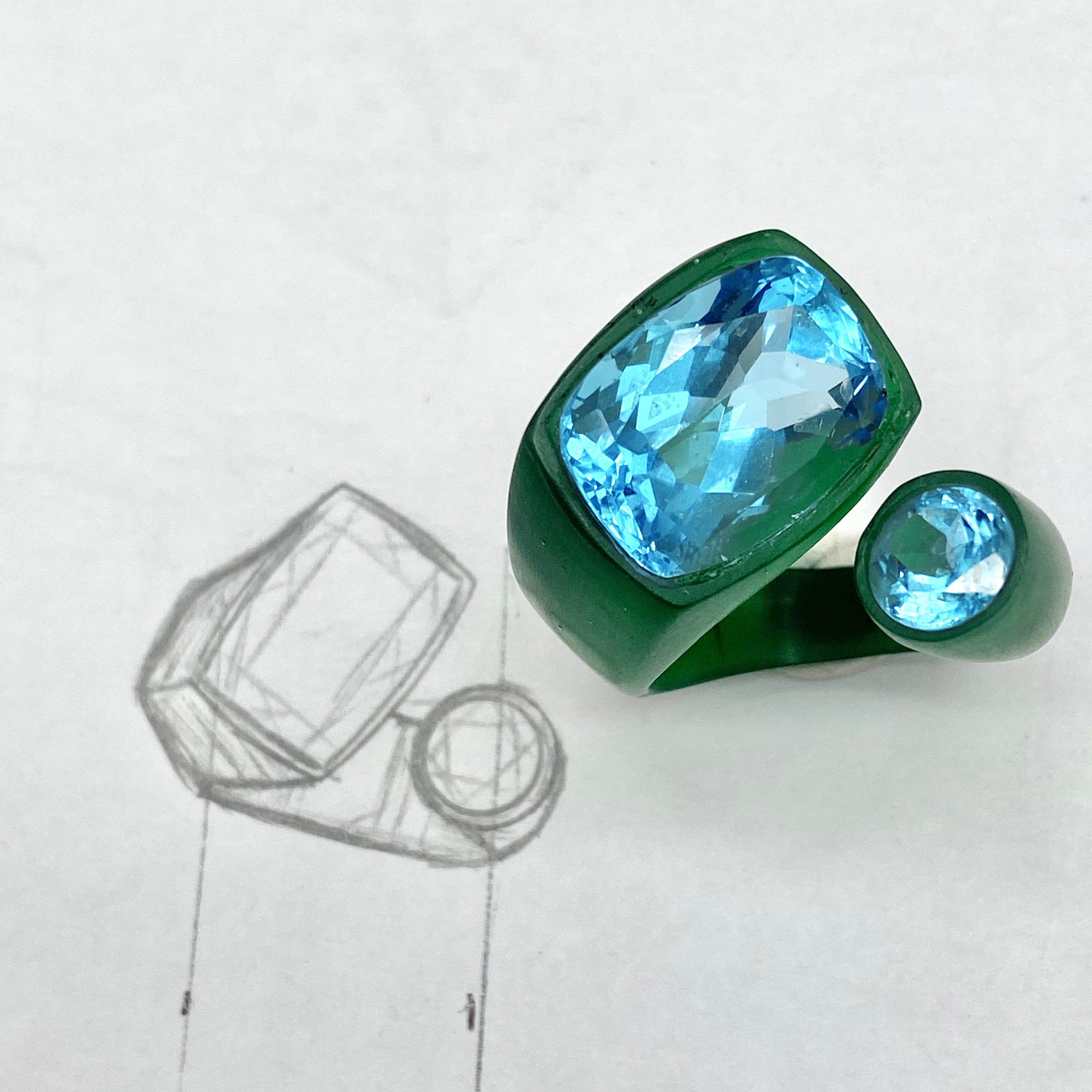 Notre processus de conception de bijoux personnalisés commence par comprendre vos préférences et vos désirs. Nous créons ensuite des croquis sur mesure, mettant en lumière chaque détail selon vos demandes. Ces croquis servent de guide pour donner vie à votre vision. Ensuite nous réalisons une maquette en cire verte, permettant une visualisation réaliste avant la production finale. Ce processus nous permet de répondre précisément à vos envies, assurant que chaque bijou personnalisé soit une expression authentique de votre style et de votre personnalité.